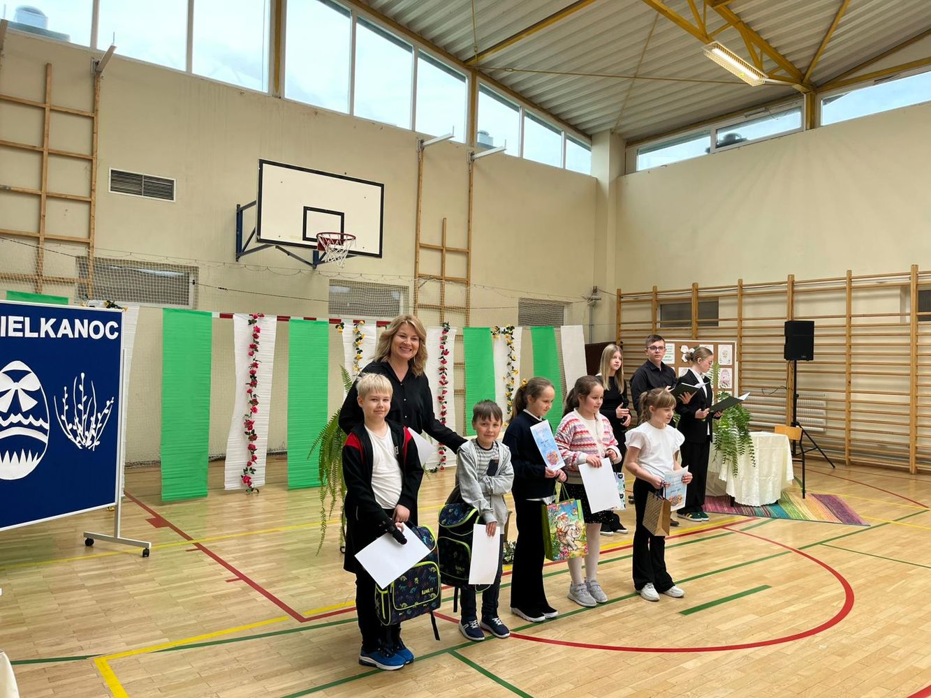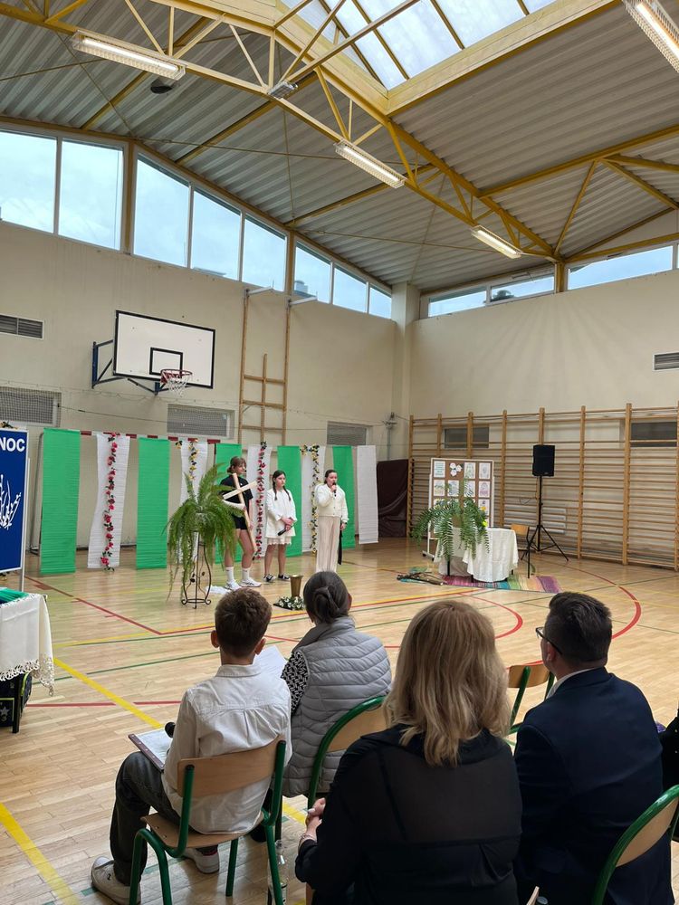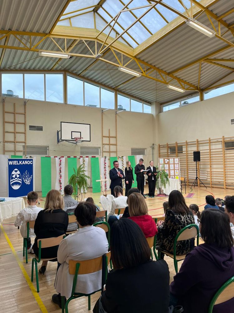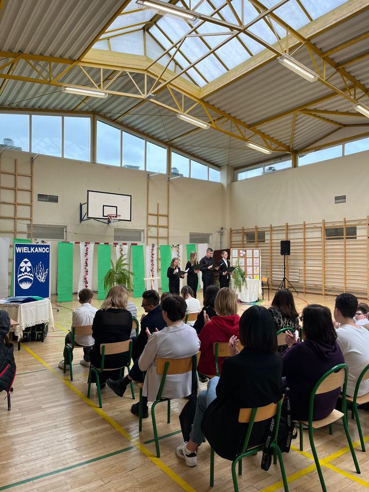 Na zakończenie odbyło się podsumowanie szkolnych konkursów związanych z Wielkanocą, a przedstawiciele samorządu uczniowskiego złożyli wszystkim świąteczne życzenia.