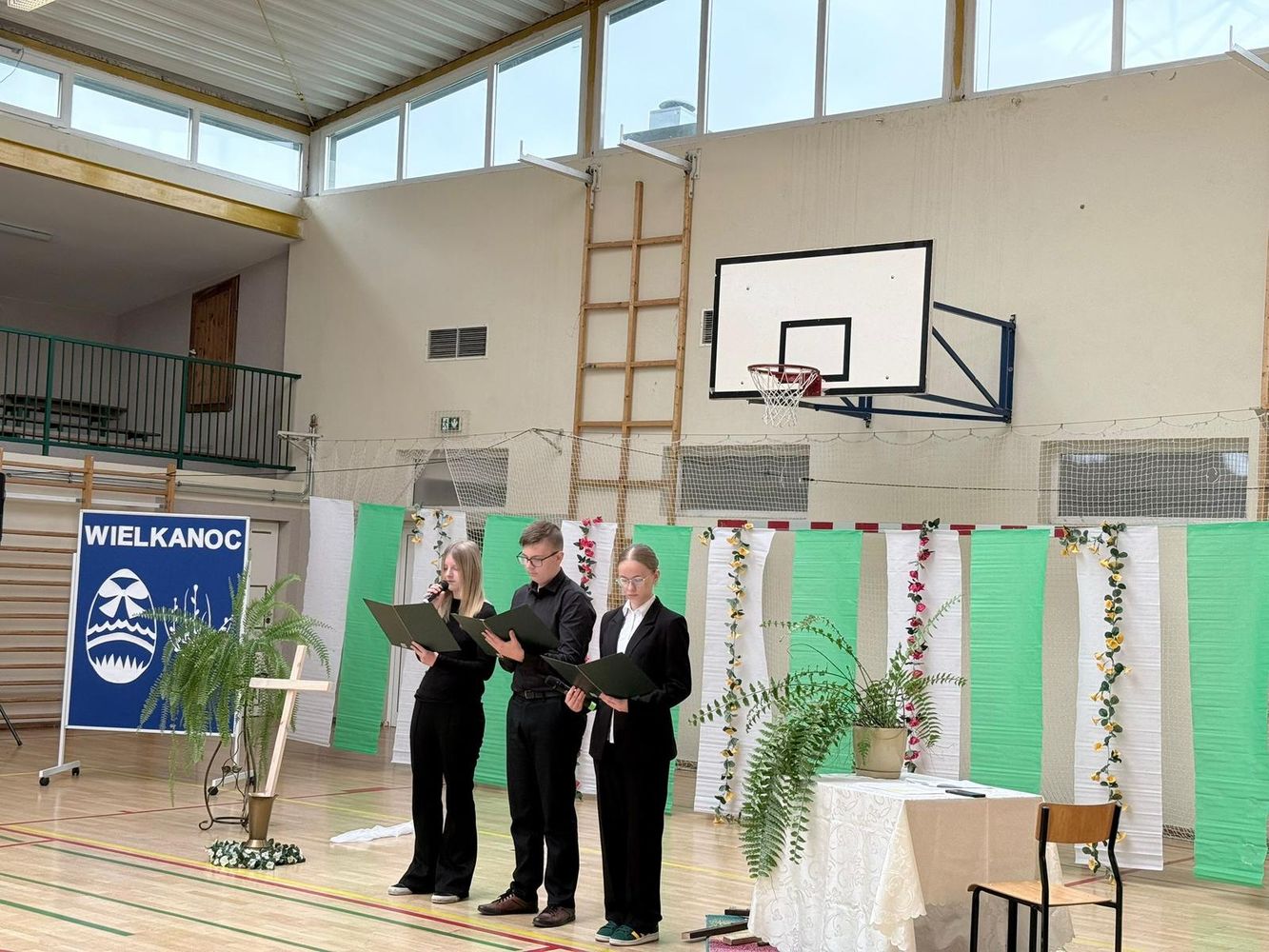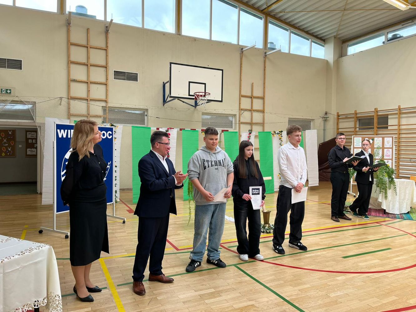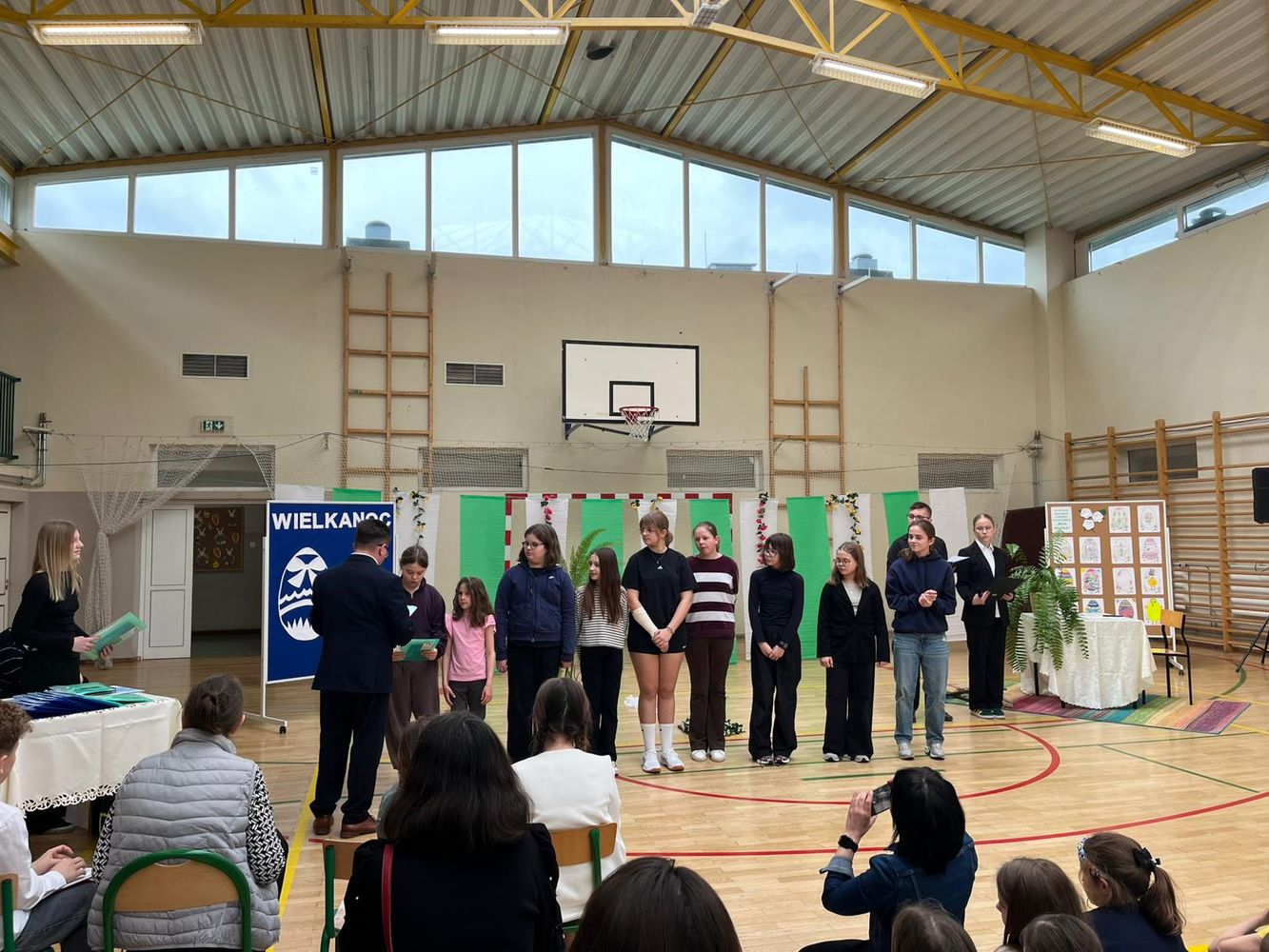 Na zakończenie odbyło się podsumowanie szkolnych konkursów związanych z Wielkanocą, a przedstawiciele samorządu uczniowskiego złożyli wszystkim świąteczne życzenia.