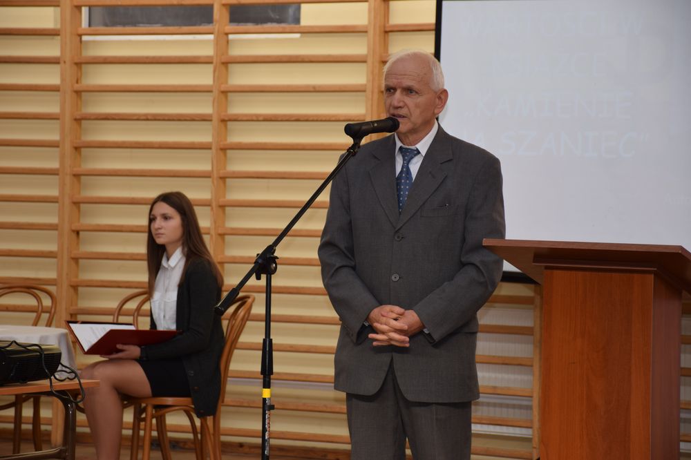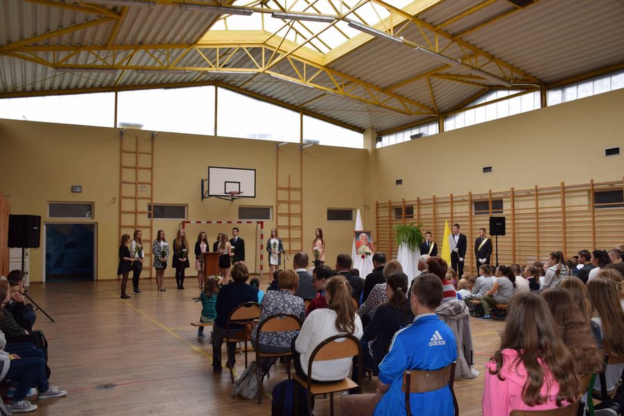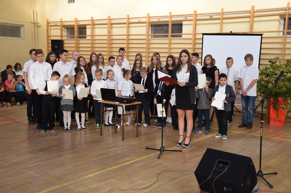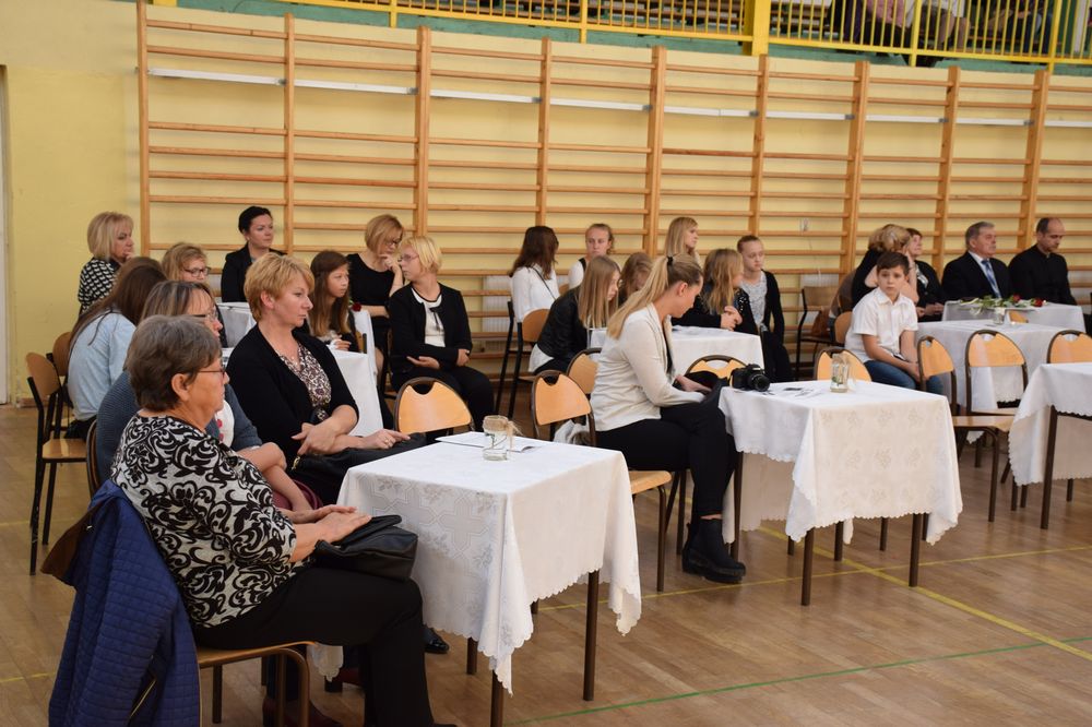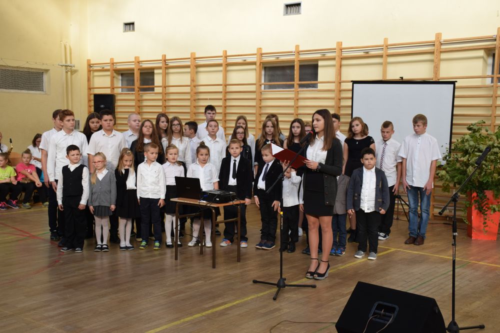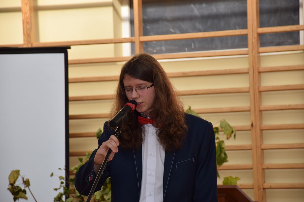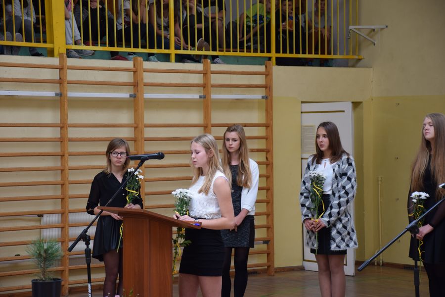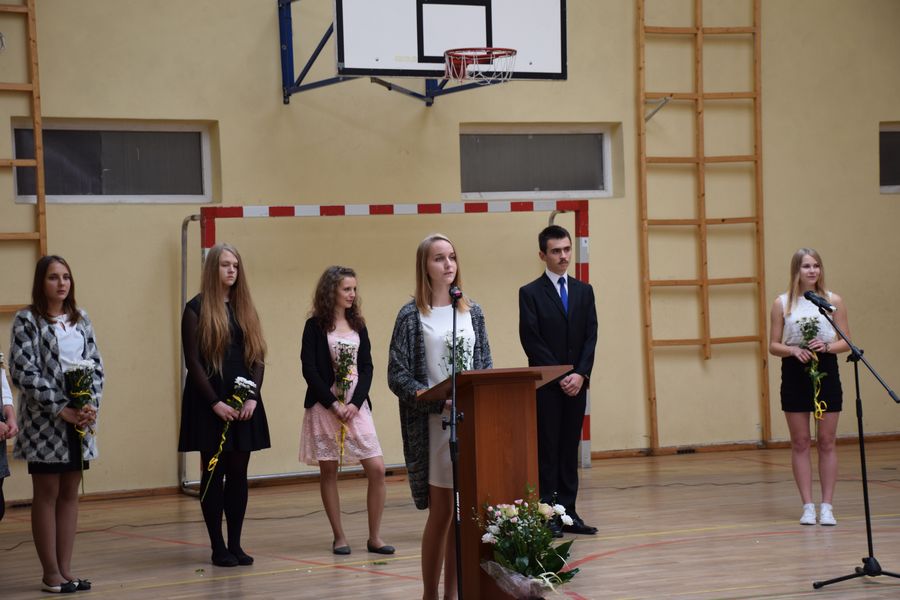 Pierwszym elementem programu było wystąpienie dyrektora szkoły Pana Dariusza Mielniczuka, który nie kryjąc wzruszenia, dziękował rodzicom, uczniom i wszystkim pracownikom szkoły za miniony rok pełen sukcesów. Z satysfakcją bowiem możemy się pochwalić wysokimi wynikami egzaminu gimnazjalnego, które są zasługą pracy całego zespołu.