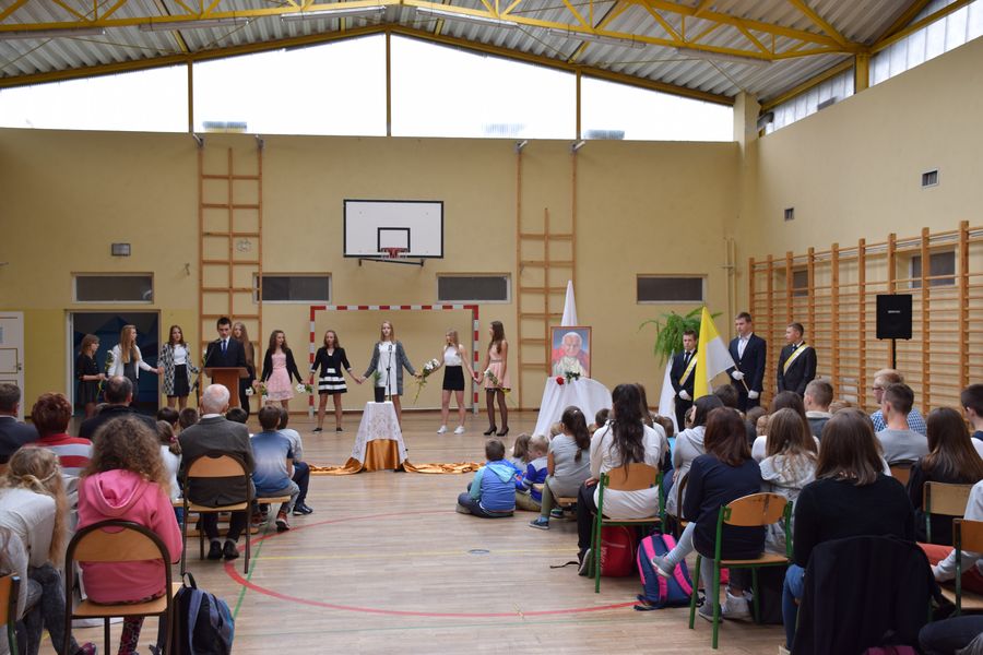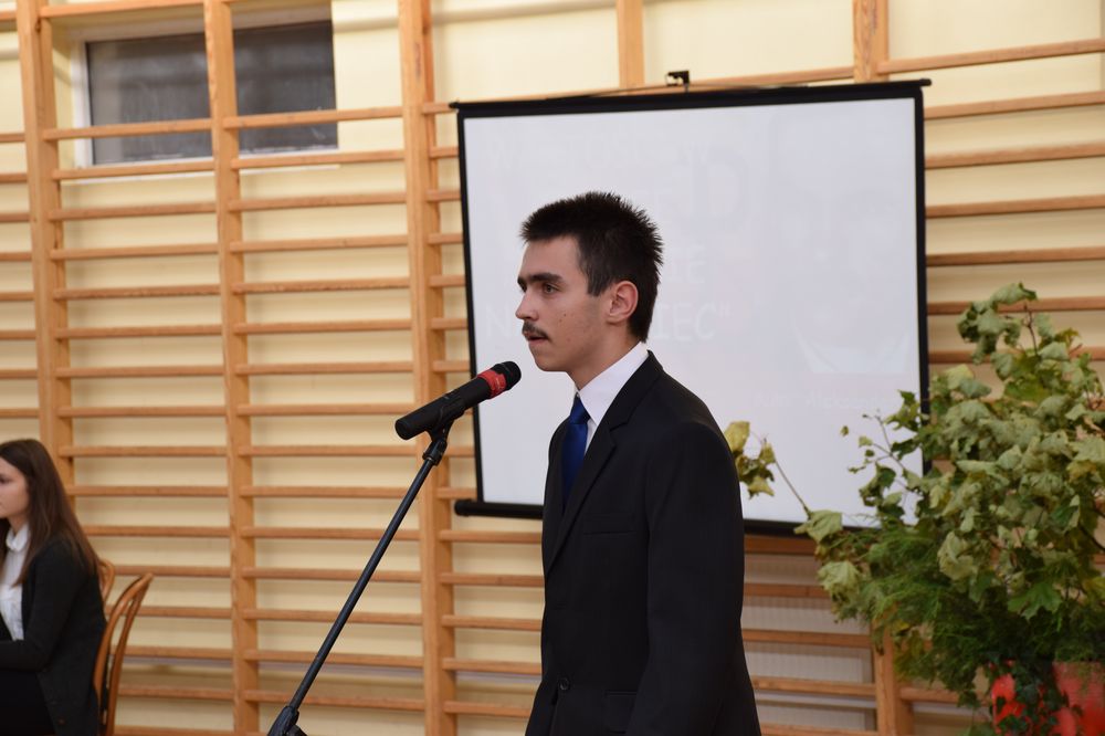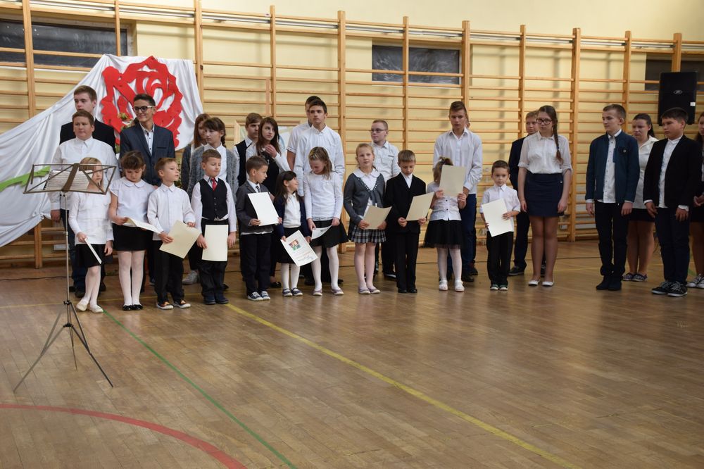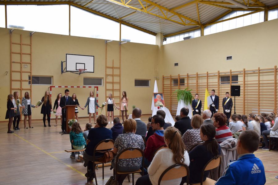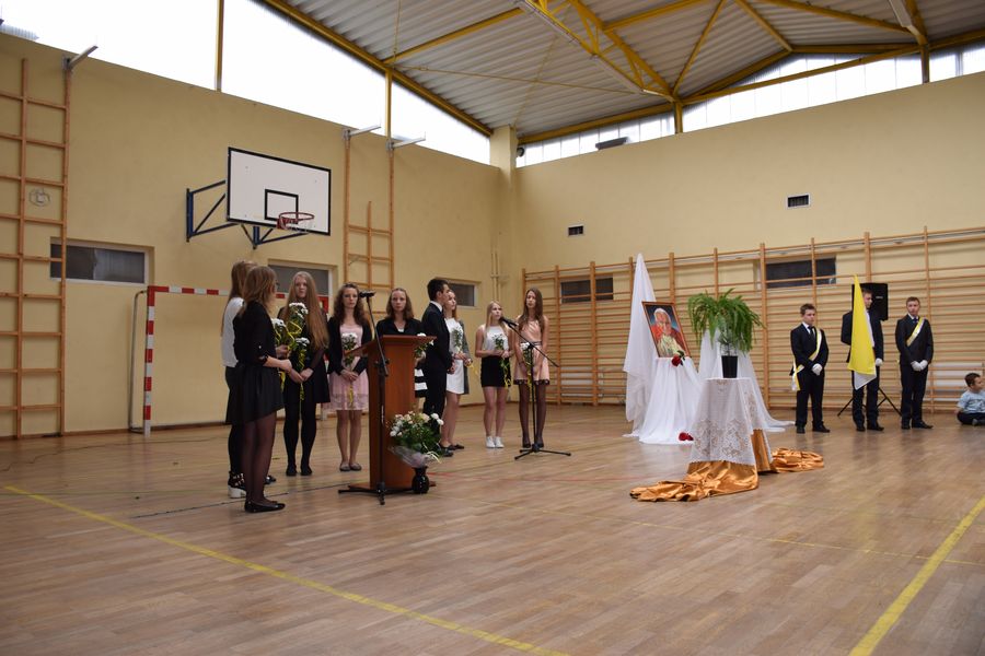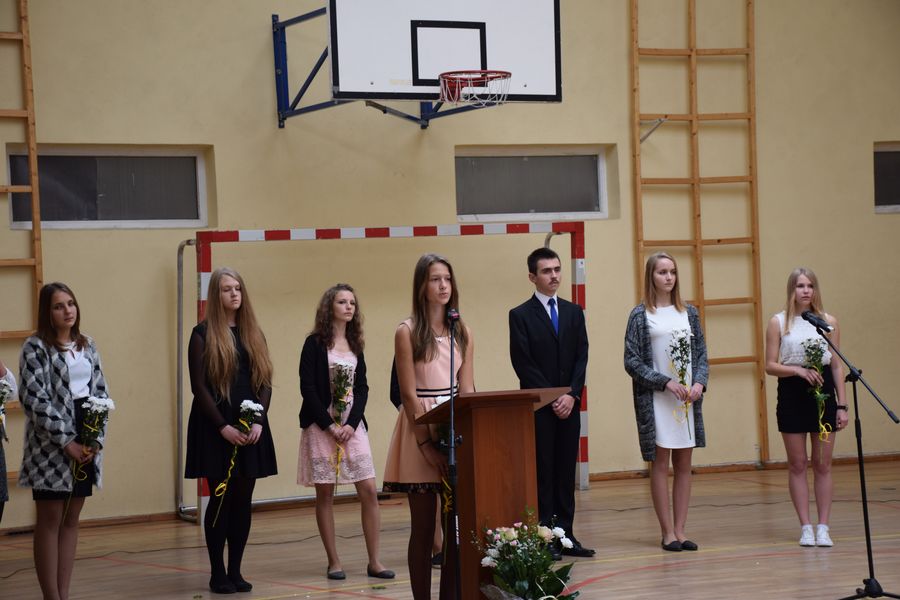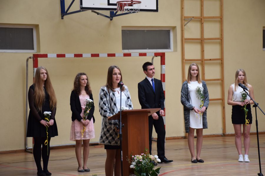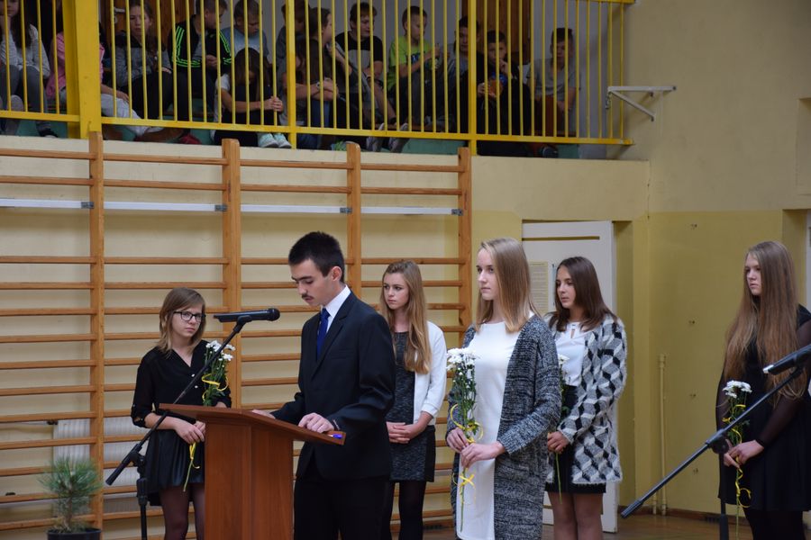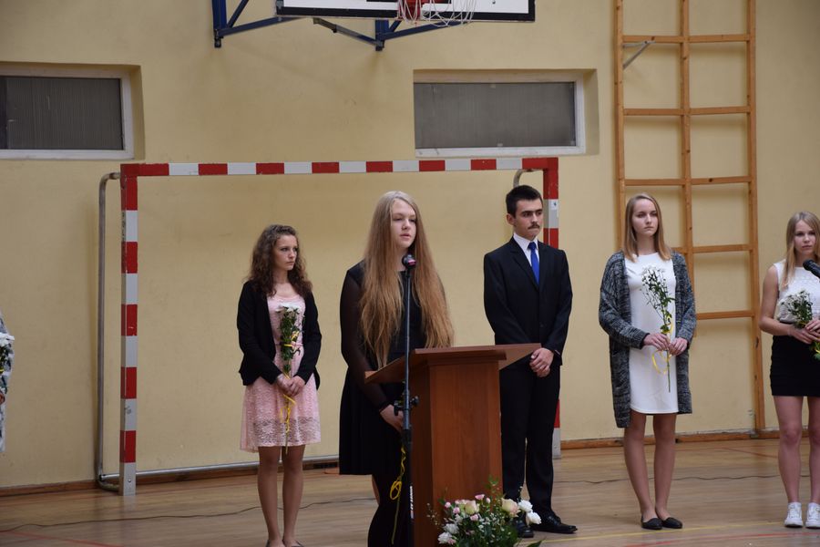 Pierwszym elementem programu było wystąpienie dyrektora szkoły Pana Dariusza Mielniczuka, który nie kryjąc wzruszenia, dziękował rodzicom, uczniom i wszystkim pracownikom szkoły za miniony rok pełen sukcesów. Z satysfakcją bowiem możemy się pochwalić wysokimi wynikami egzaminu gimnazjalnego, które są zasługą pracy całego zespołu.