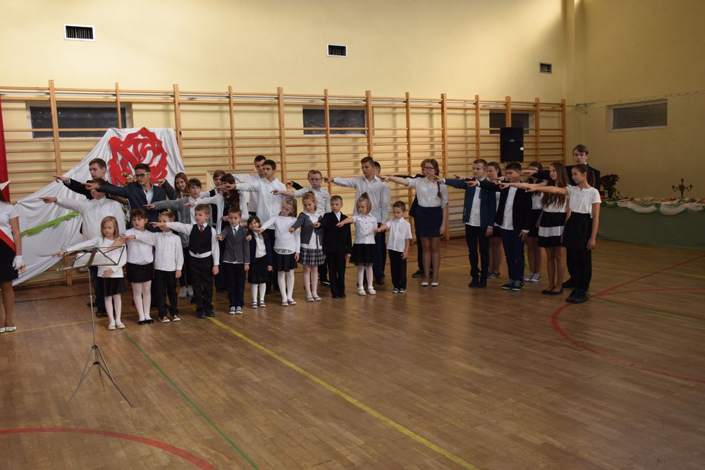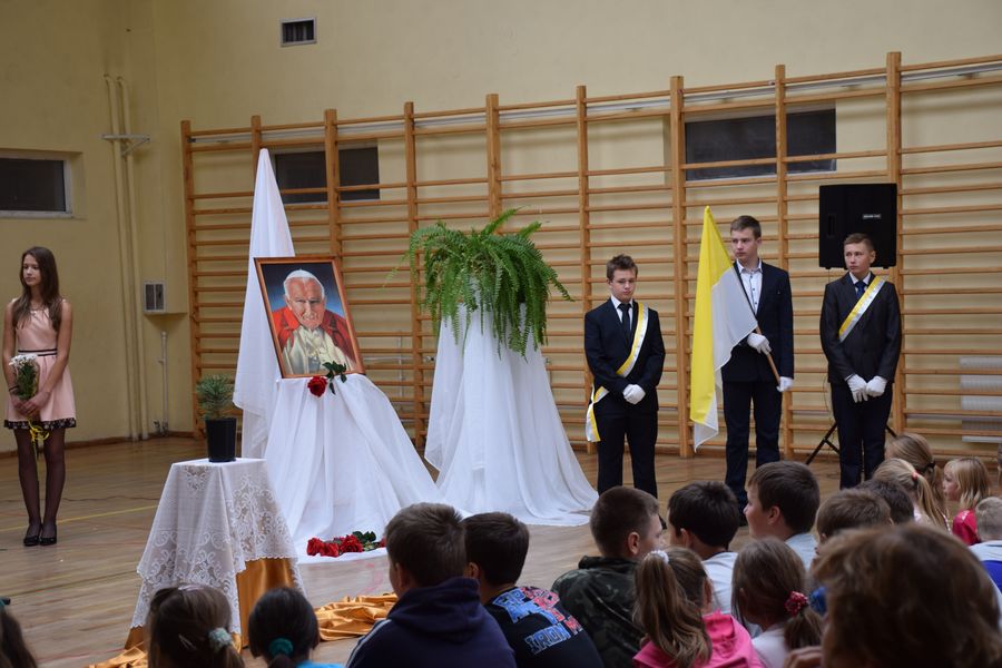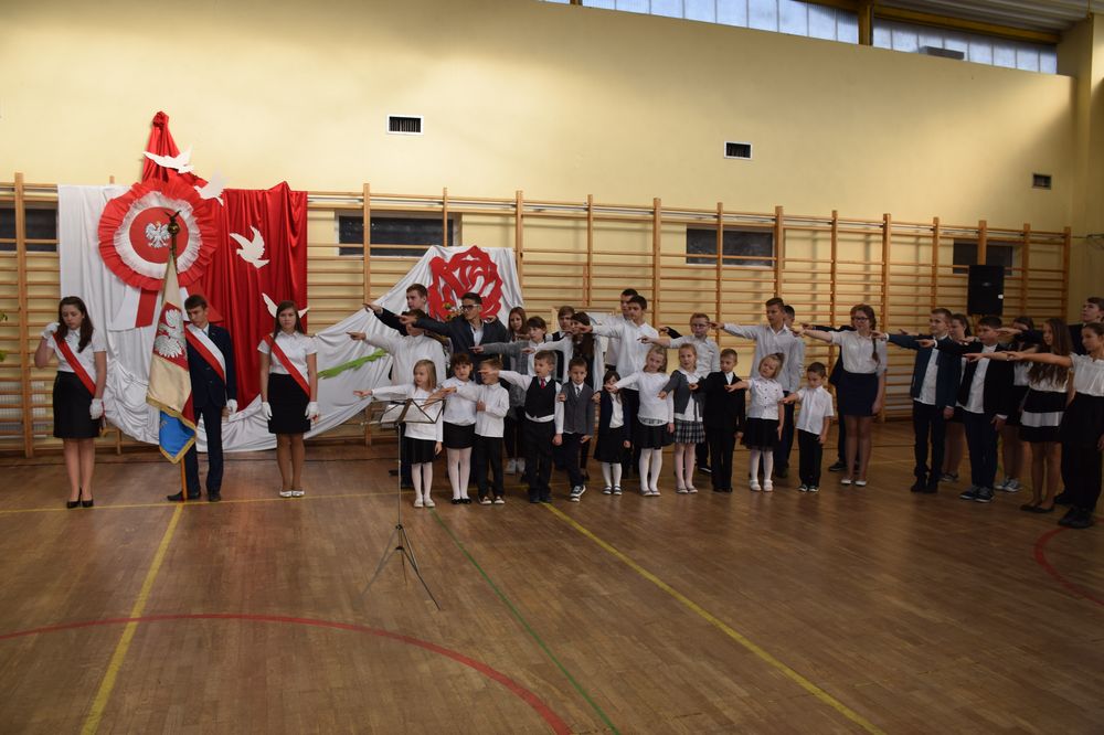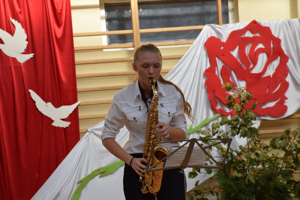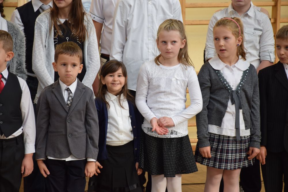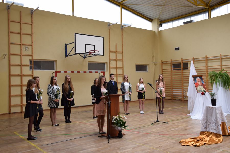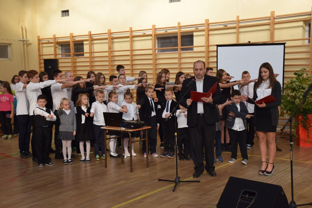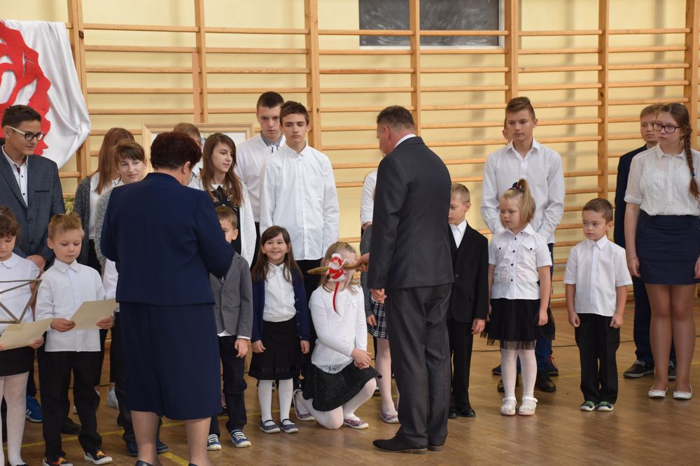 Pierwszym elementem programu było wystąpienie dyrektora szkoły Pana Dariusza Mielniczuka, który nie kryjąc wzruszenia, dziękował rodzicom, uczniom i wszystkim pracownikom szkoły za miniony rok pełen sukcesów. Z satysfakcją bowiem możemy się pochwalić wysokimi wynikami egzaminu gimnazjalnego, które są zasługą pracy całego zespołu.