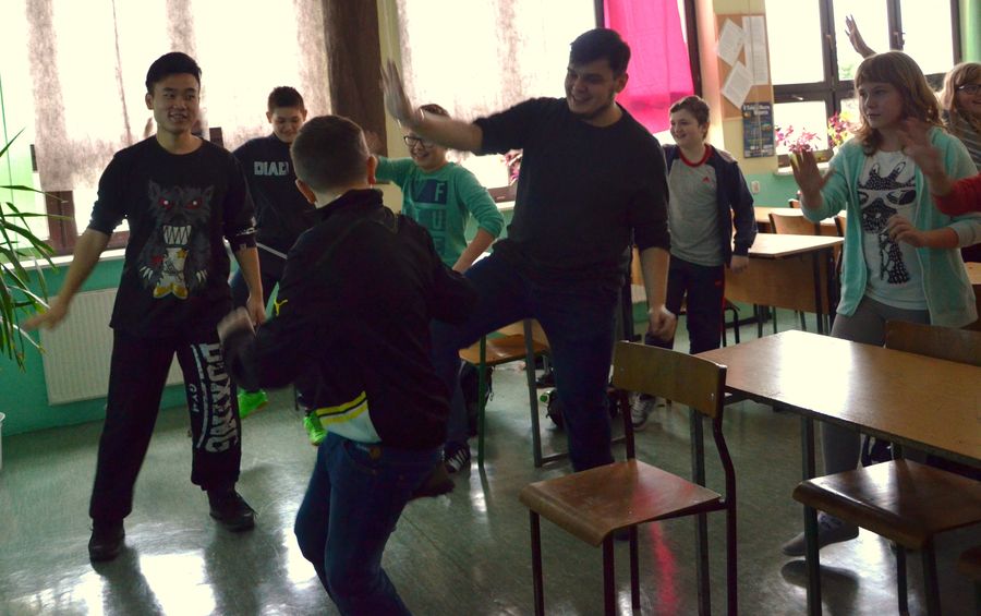 11 – 15 stycznia 2016 roku były dniami wypełnionymi radością, pozytywną energią i dobrą zabawą. W ramach projektu edukacyjnego KidSpeak AIESEC Polska w Zespole Szkół nr 1 w Milejowie odbyły się warsztaty edukacyjne z zakresu historii i kultury Brazylii i Chin. Gośćmi milejowskiej szkoły byli Haoran WU z Chin, student z Australii oraz Rafael Correa, aktor, fotograf i nauczyciel z Brazylii. Haoran i Hafa prowadzili zajęcia w języku angielskim w formie zabawy, tańca i śpiewu. Uczniowie z Milejowa poznali dużo interesujących faktów związanych z Brazylią i Chinami.