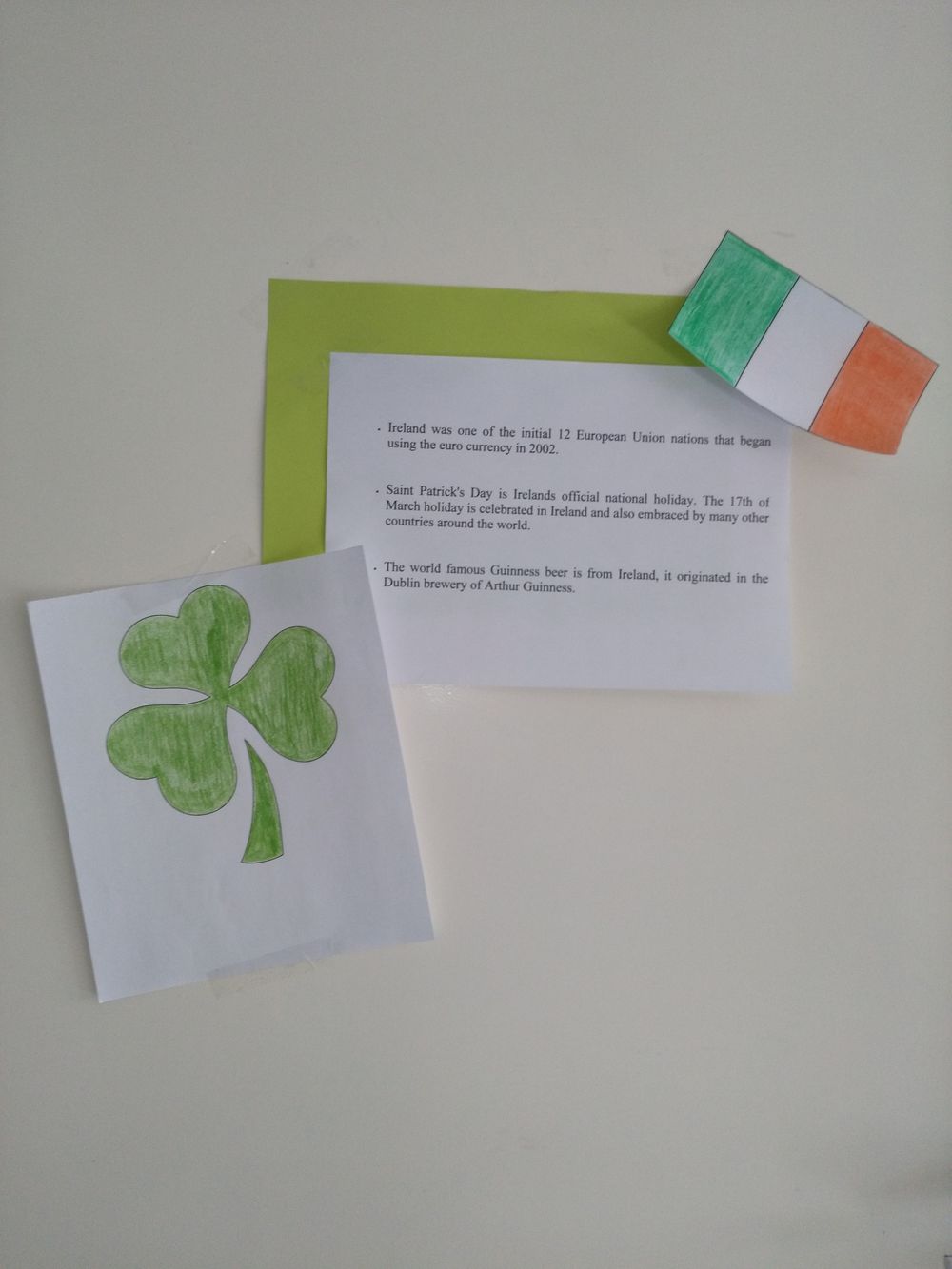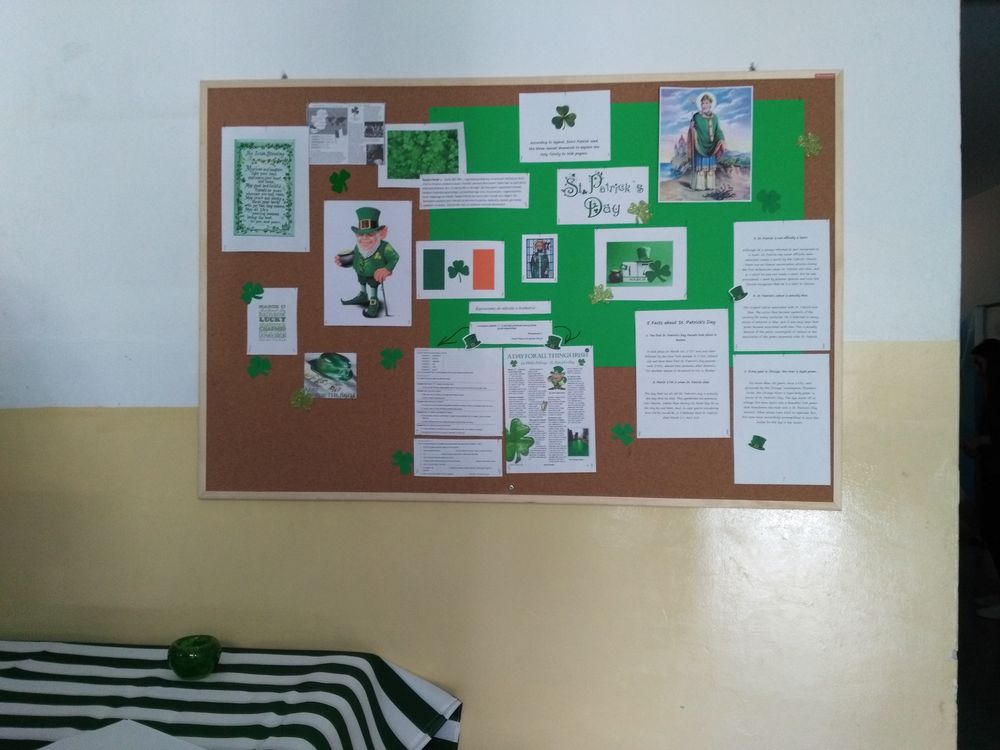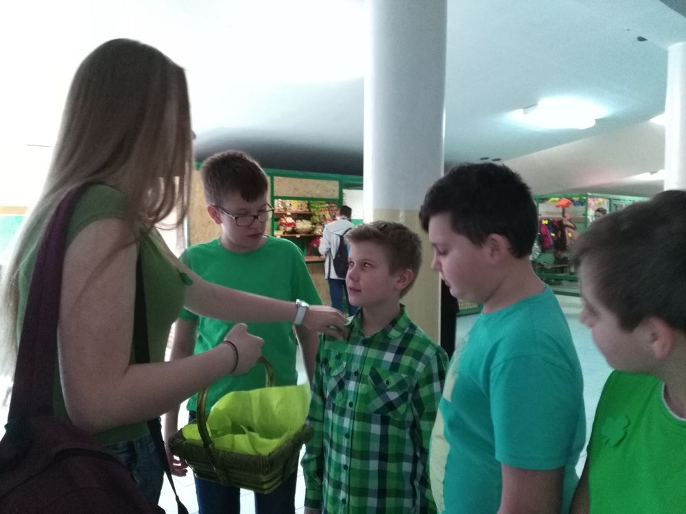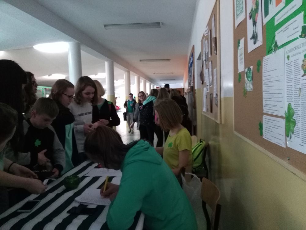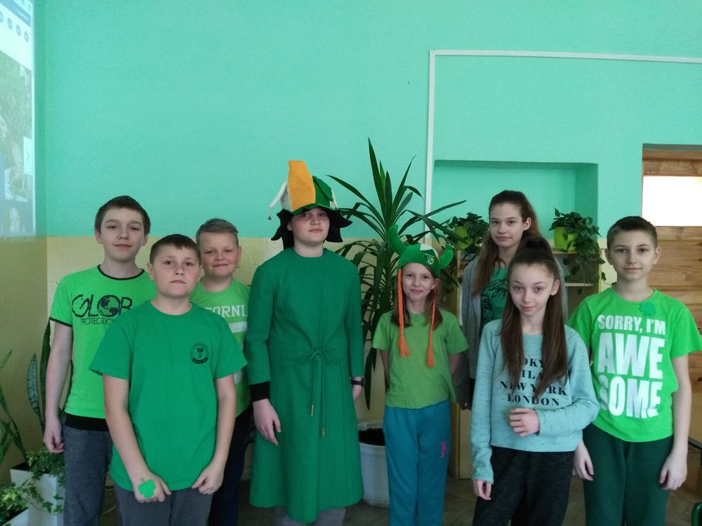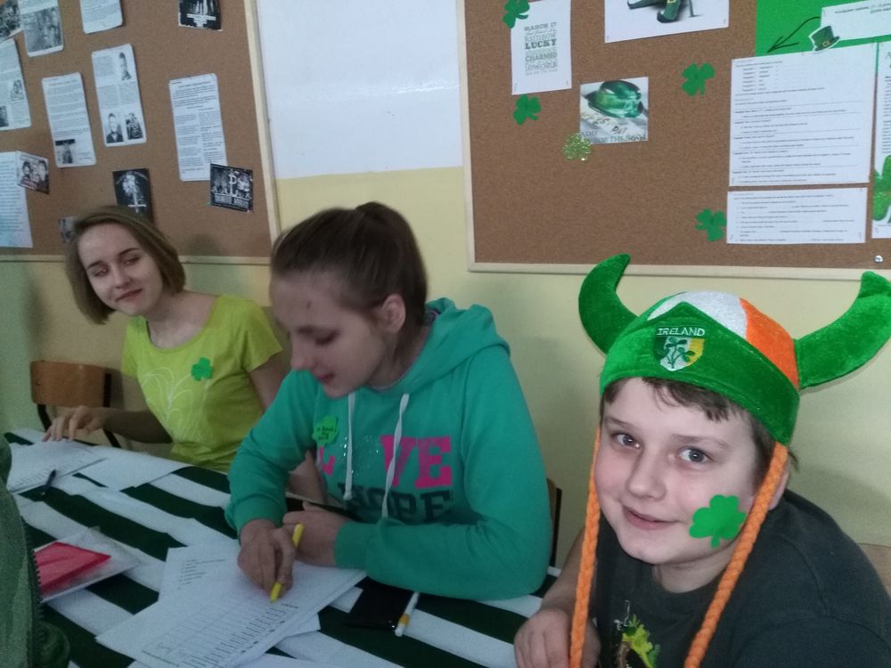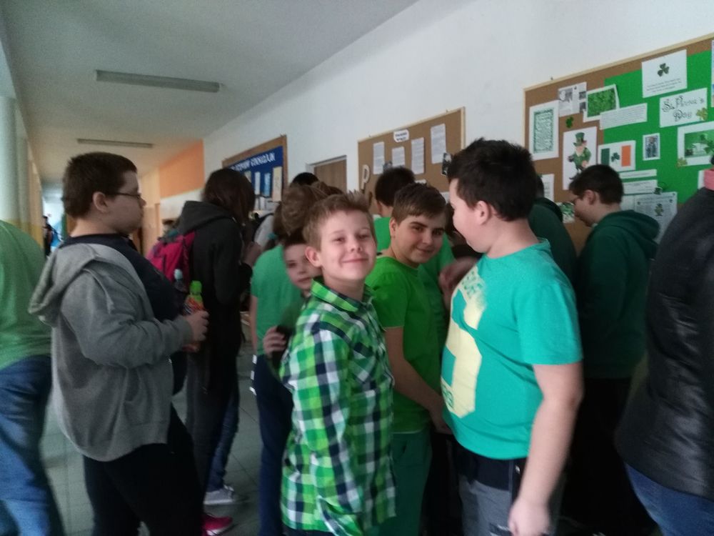 Młodzież ubrała się w tym dniu w kolorze zieleni, kolorze Irlandii. W szkole rozwieszone zostały informacje związane z historią, kulturą i sławnymi ludźmi Irlandii. Wszędzie można było zobaczyć flagi tego kraju oraz irlandzkie symbole. Uczniowie i nauczyciele mieli przypięte do ubrań koniczynki, za pomocą których Święty Patryk tłumaczył istnienie Trójcy Świętej. Młodzież chętnie brała udział w konkursach i quizach, wykazując się wiedzą na temat Irlandii, a także umiejętnością posługiwania się językiem angielskim, ponieważ pytania sformułowane były w tym języku i odpowiedzi również należało udzielić „in English”.